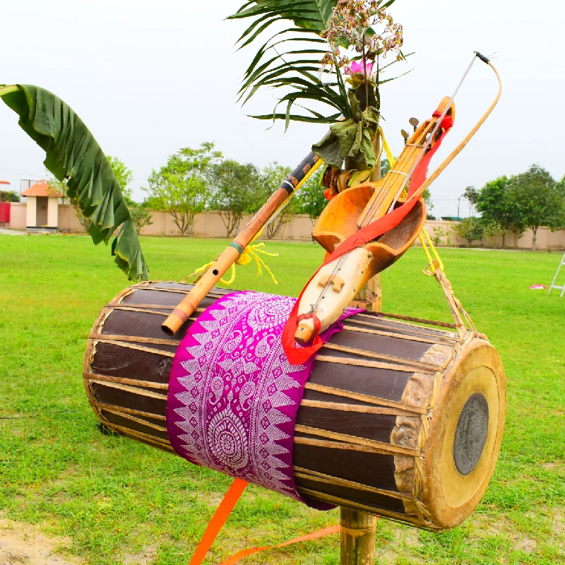Traditional Attire: People adorn themselves in traditional Bodo attire, with women wearing dokhna (a traditional scarf) and aronai (a traditional skirt), and men wearing dhoti and chadar.